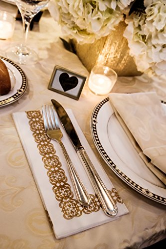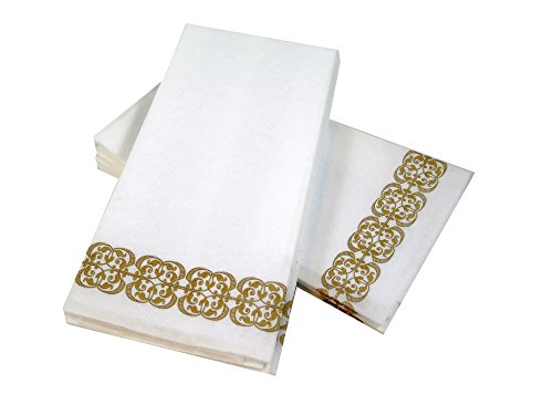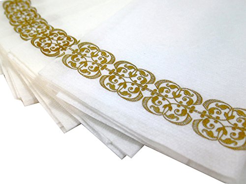 Guest Linen Decorative Hand Napkins (200 Pack, Gold Lace) - Cloth Like Paper Disposable Bathroom, Wedding & Dinner Towels