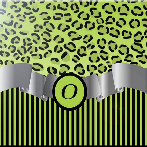 Rikki Knight RK-6intilec-2373 6" X 6" Letter "O" Lime Green Leopard Print Stripes Monogram Design Ceramic Art Tile