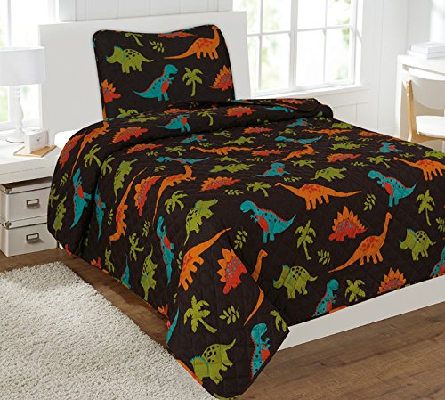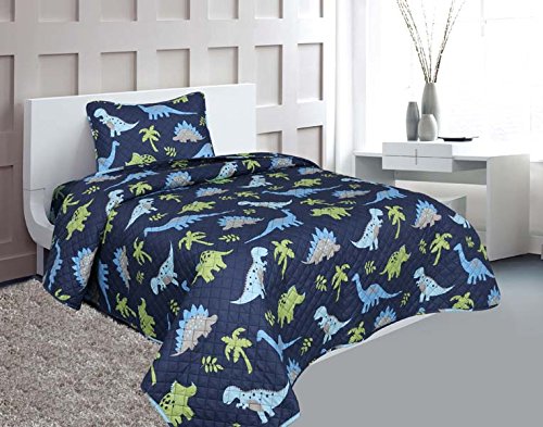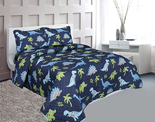 Golden linens Full Size 3 Pieces Printed New Designs Kids Bedspread/ Coverlet Sets/ Quilt Set (Full, DINOSAUR)