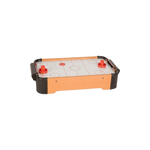 Studio : CHH Publisher : CHH Binding : Toy Product Description Air hockey is a fun and exciting way to settle a score, and the CHH 21 in. Mini Air Hockey Table Top Game provides a space where you can do so anywhere. This compact air hockey table features authentic action via a battery-powered air motor. Two pucks and two pushers included. Requires 5 AA batteries (sold separately). Exciting air hockey action in a small package. Easily stored away or packed for a trip. Includes 2 pucks and pushers. Battery operated (not included). Dimensions: 20.5L x 12W x 4.125H inches. 0