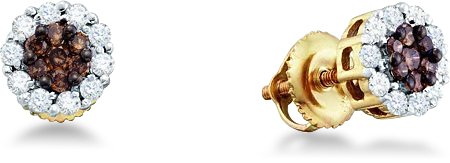 -. Title : 14k Yellow Gold Brown Chocolate and White Round Diamond Stud Earrings - 7mm Height * 7mm Width (1/2 cttw)