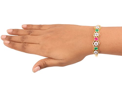 -. Binding : Jewelry -. Brand : Swasti Jewels -. Department : womens -. Feature : A perfect gift for Every P.R.Incess . Ideal Gift for Loved ones. / Indian Ethnic Design Floral Cubic Zirconia Bracelet Kada - Stone Cut - AAA Grade. The design goes very well with traditional outfits majority. / No of Items : 1 Piece Bracelet / Gold Plated and Rhodium Plating for that ever lasting shine. -. Label : Swasti Jewels -. Manufacturer : Swasti Jewels -. Model : AIMBG222-$P -. MPN : AIMBG222-$P -. PartNumber : AIMBG222-$P -. ProductGroup : Jewelry -. ProductTypeName : FASHIONNECKLACEBRACELETANKLET -. Publisher : Swasti Jewels -. Studio : Swasti Jewels -. Title : Swasti Jewels Women's American Diamond CZ Zircon Fashion Traditional Ethnic Floral Bracelet Kada