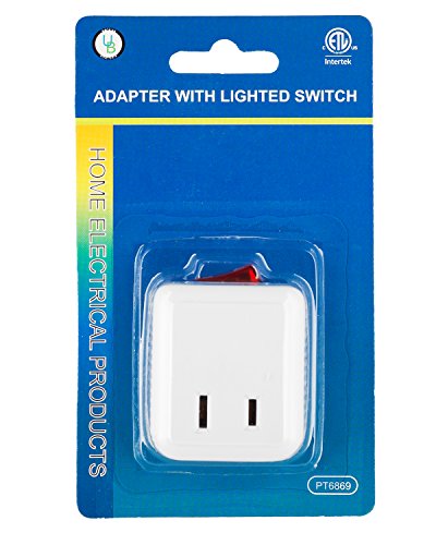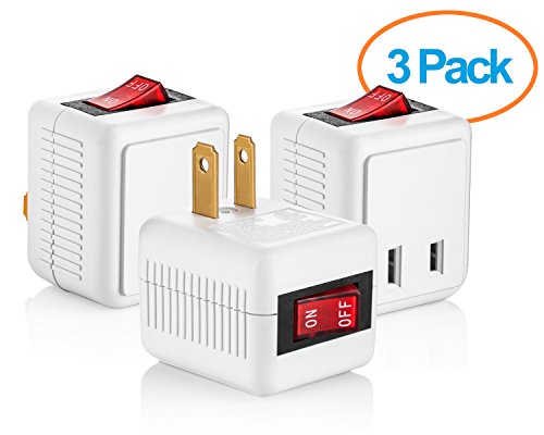Yubi Power Single Port Outlet Wall Tap Adapter 2 Prong One Outlet Adapter With Lighted Switch Power On Off Control - 3 Pack