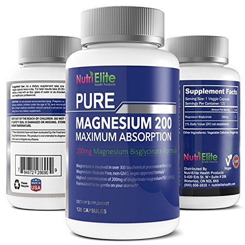 Experience the benefits of NutriElite Magnesium Glycinate - As Bisglycinate - Magnesio 400mg Suggested Daily - 200mg Of Chelate Supplement In Each Capsule - Formulated For Maximum Absorption - Vegan, Non-GMO And No Stearates - 120 Capsules