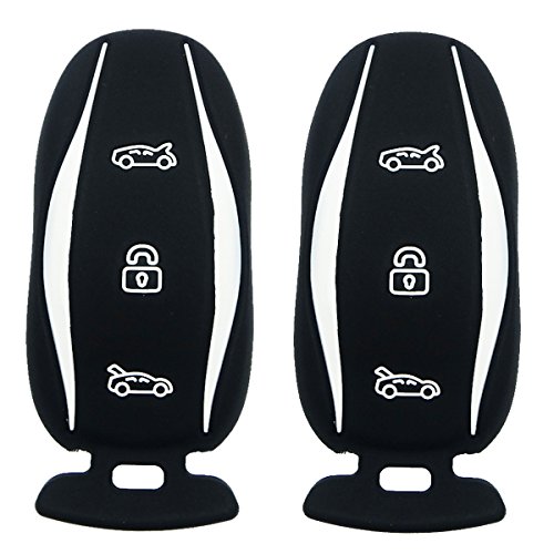 2Pcs Coolbestda Rubber 3Buttons Smart Key Remote Fob Cover Case Skin Jacket Keyless Protector Bag for Tesla Model S X P85D P70