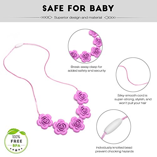 SAFETY FIRST-Break-away clasp and individually-knotted beads for safety. Alternative to Baltic amber necklaces, freezer teething rings, chew keys, and teether toys.