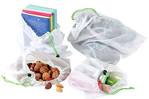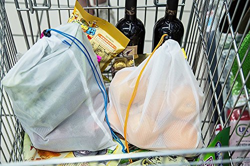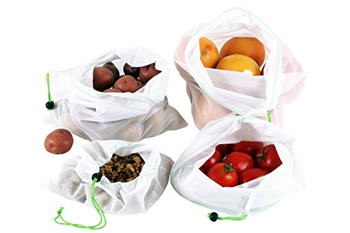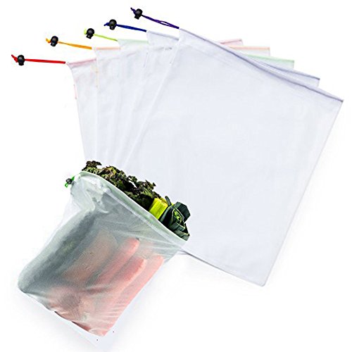 BFOX Reusable Mesh Produce Bags Eco Friendly Washable Fruit Vegetable Bags for Grocery Shopping & Storage Set of 5-12x14in