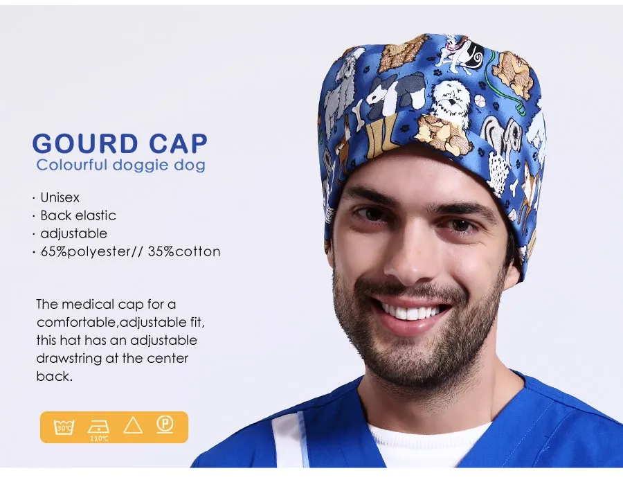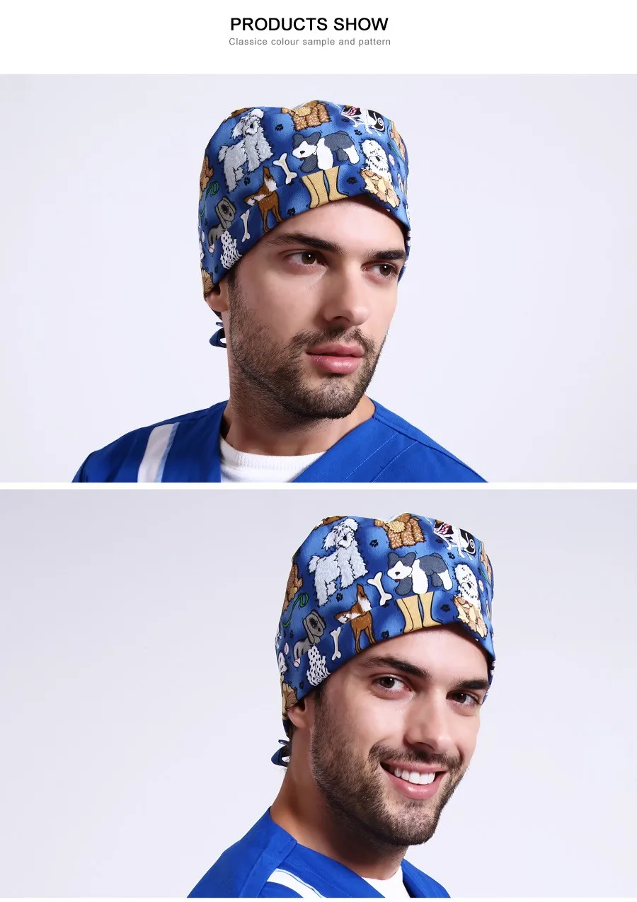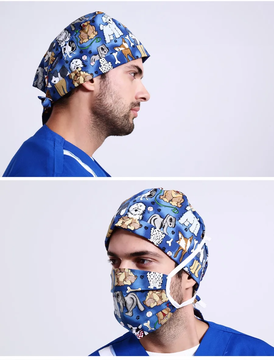 | [해외]애완 동물 병원 의료 남성 여성 외과 모자 조절 긴/짧은 머리 호박 스크럽 간호사 모자 수건 흡수 땀 의료 |