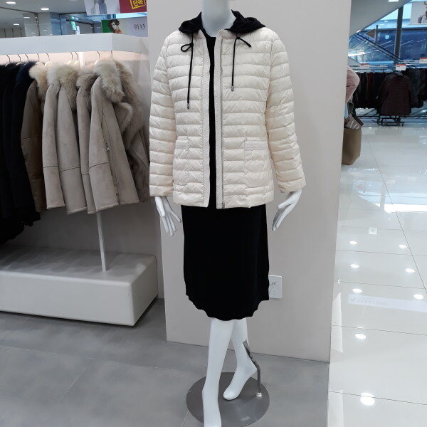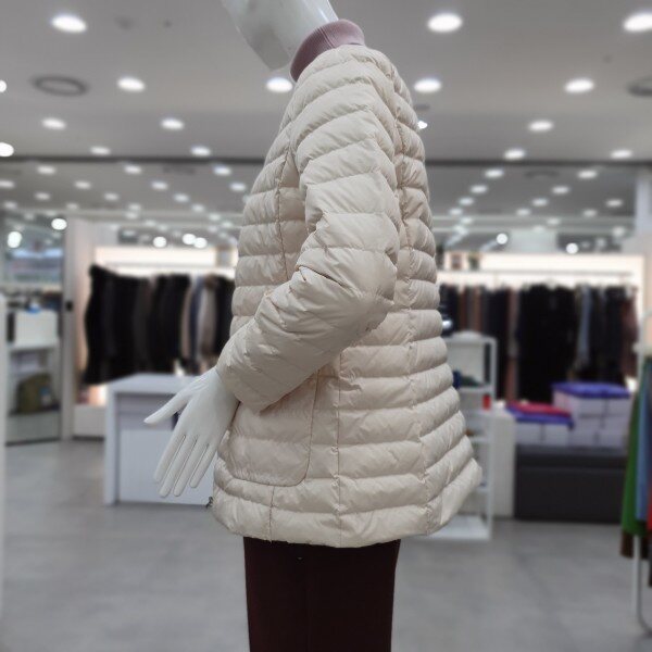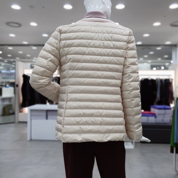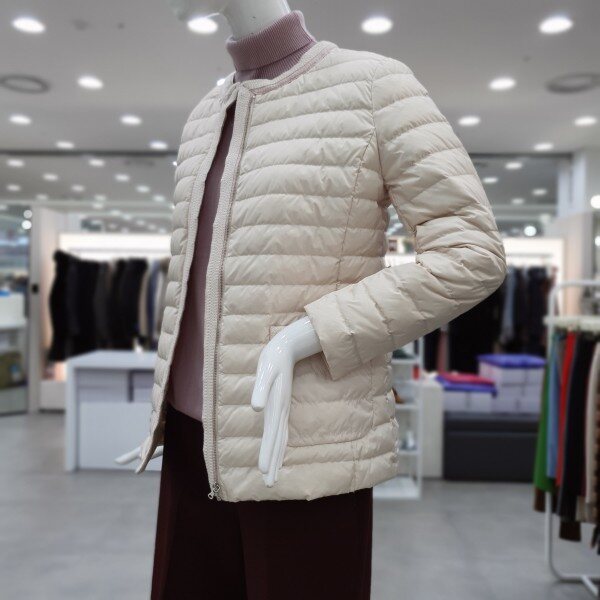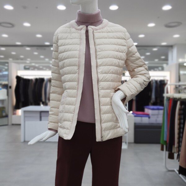 가벼운 구스 경량패딩으로여성스럽게 심플하게 다양하게 코디가 가능한 아이템입니다 겉라운딩 배색의 마무리가 깔끔합니다