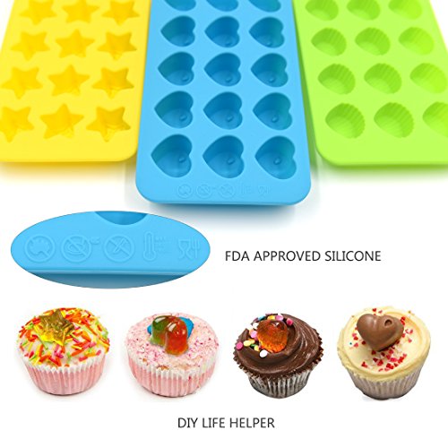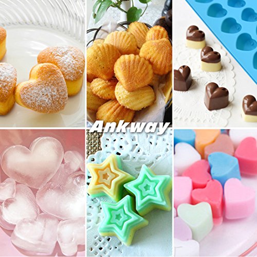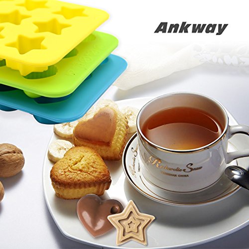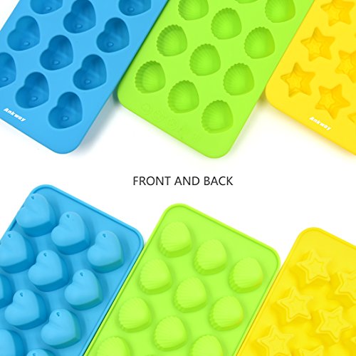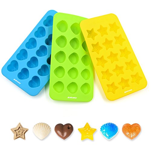 Silicone Chocolate Molds & Candy Molds - Ankway Set of 3 Non Stick BPA Free Flexible Hearts, Stars & Shells Mini Wax Molds (15 Cups)