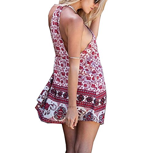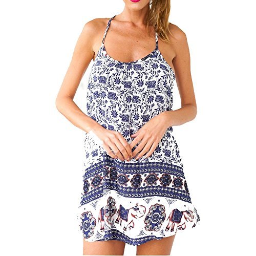 PinRoad Women Ethnic Elephant Print Summer Beach Mini Tank Dresses