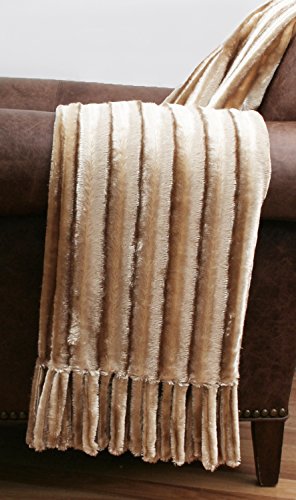 Thro by Marlo Lorenz Glamour Faux Fur Throw with Foxtails, Champagne