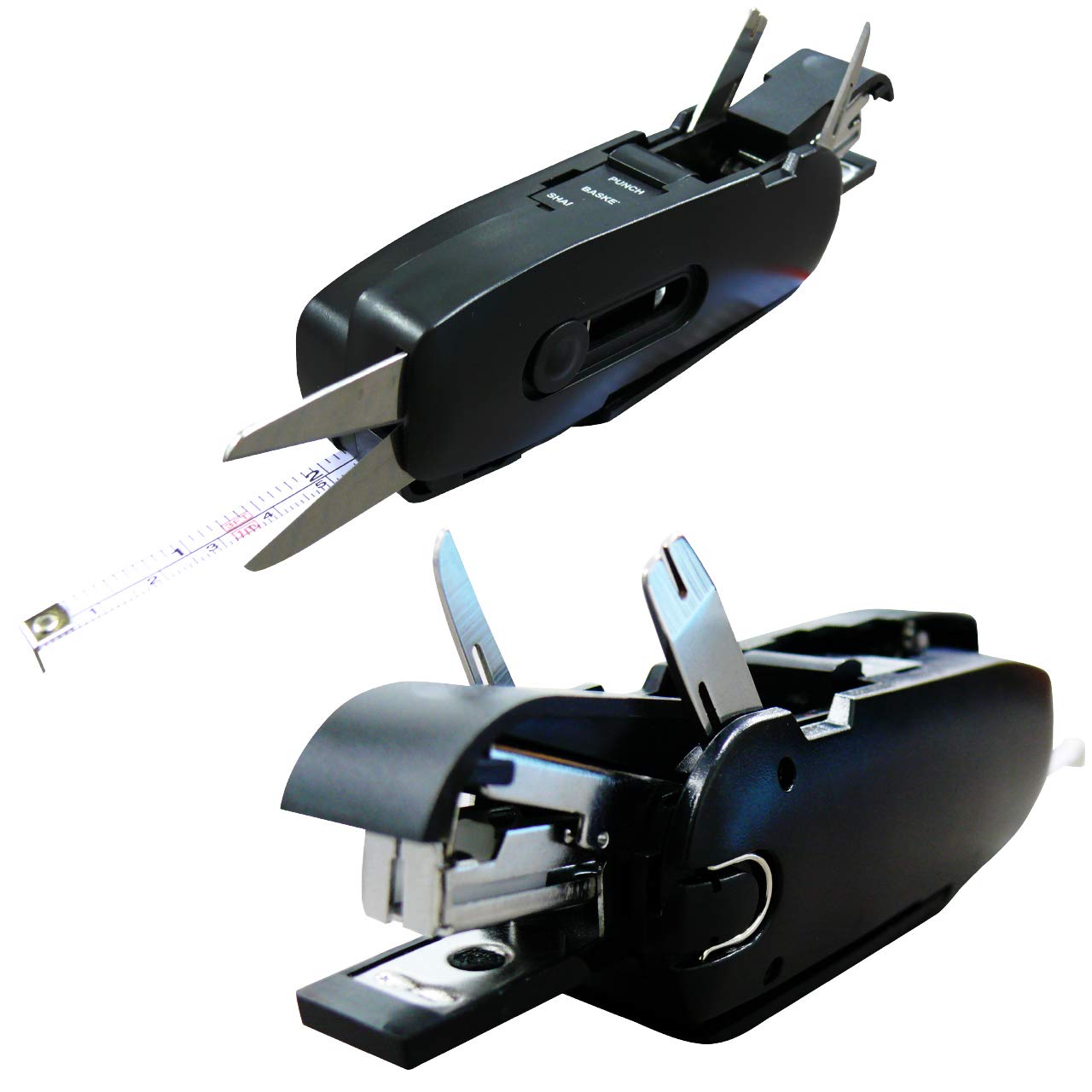 <オフィスワークはこれ1つで解決。事務作業で必要な文房具やツールをコンパクトなサイズに多数搭載した多機能ツールです。 ホチキス、穴あけパンチ、ハサミ、巻き尺、ステープルリムーバー、マイナスドライバー、ナイフ、鉛筆削りなどの役立つ機能を8種搭載。 オールインワンの文房具。「あの文房具どこだっけ?」と引き出