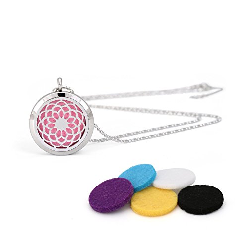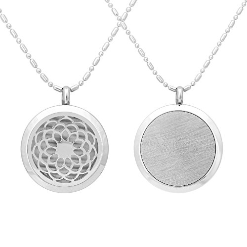 -. Feature : Quantity: 1*Blowin Premium Sunflower Pattern Aromatherapy Essential Oil Diffuser Necklace Locket Pendant, Hypo-allergenic Stainless Steel Jewelry with 24" Chain and 6 Washable Pads / Size: Stainless steel pendant is 1.18"/3cm in diameter and weighs 0.6oz/18g, with 24"/60cm lobster claw beads chain, extra 5cm tails chain for adjust. / A unique, locket style essential oil necklace so you can now wear your essential oils anywhere. Enjoy the scent of your favorite essential oil without the oil touching your skin. / Pendant is made from hypo-allergenic stainless steel for long life and durability.Strong magnetic closures and solid back insure you never have to worry about getting oil on your clothes. / Package: Included with one small velvet gift bag.
