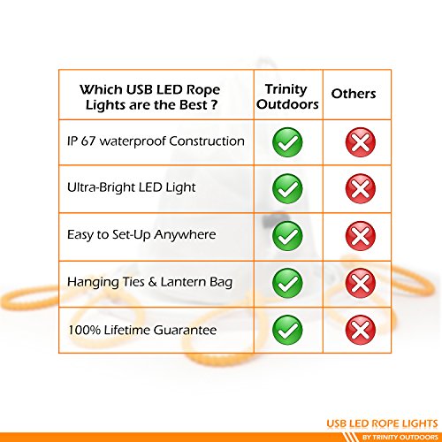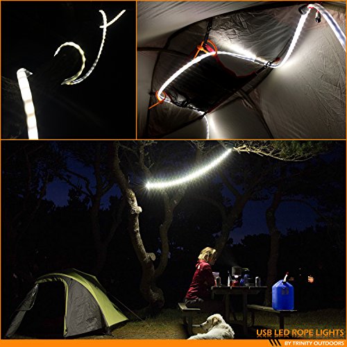 Trinity Outdoors Camping String Lights, Super Bright 5 Foot USB LED Rope Doubles as LED Lantern, Portable, IP-67 Water-Resistant, Perfect For Camping, Hiking, Backpacking and Emergencies