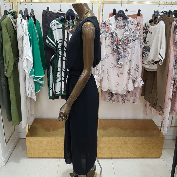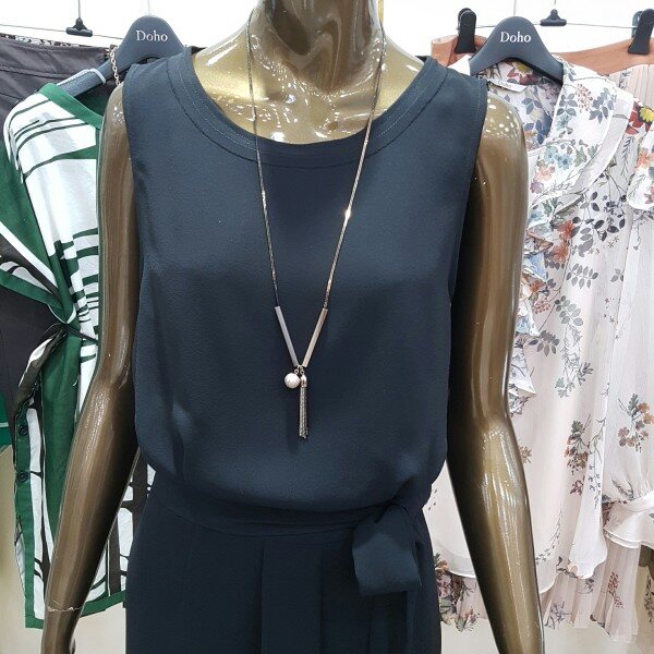 목걸이가 세트로 구성된 상품으로 밑단이 트여있는 형태의 고급스러운 디자인의 원피스 입니다( 앞 트임이 매력적인 도호 롱 나시 원피스입니다 )