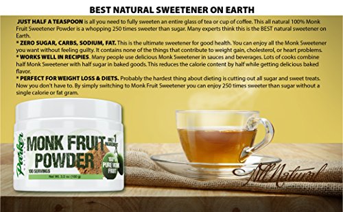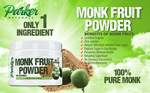 Studio : Norax Supplements Publisher : Norax Supplements Binding : Health and Beauty Product Description WORLD'S #1 HEALTHY SWEETENER 100% Pure Organic Monk Fruit Sweetener Powder is the perfect sugar substitute. It's a whopping 250 times sweeter than sugar. The standard serving size of just 1 gram is all you need to sweeten coffee, tea, beverages, sauces, and even baked goods. It contains NO calories, fat, sodium, or carbohydrates. PREFERED BY PEOPLE WITH DIABETES because it is an excellent great tasting natural sweeter with no calories. It will not increase blood sugar levels. This lets everyone, regardless of health problems, enjoy a natural sweetener that can easily replace sugar cane and chemical man made sweeteners. HELPS YOU LOSE WEIGHT. One of the biggest contributors to weight gain are sugar intense drinks. Replace sugar with Monk Sweetener and you have a marvelously sweet drink with no calories and no sugar. This not only helps you quickly and more easily lose weight, it will also help improve your mood while guarding against depression often associated with sugar. GREAT FOR BOTH ADULTS AND KIDS. Because this sweetener is all natural, 100% pure, and organic, it is the perfect ingredient for every member of the family. Much more healthy for kids than sugar. The Monk Fruit is a small melon that grows in warm climates. It's a renewable resource that helps the world economy. 100% MONEY BACK GUARANTEE ensures this will be your best bet for a no-risk purchase. Many customers love the taste and health properties so much they return to buy another bottle or two. HURRY AND BUY NOW while we have a new shipment in stock. This makes a much appreciated gift for friends, family, and co-workers. 0 |