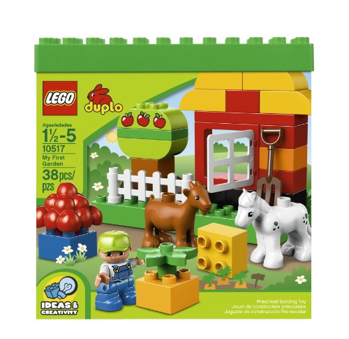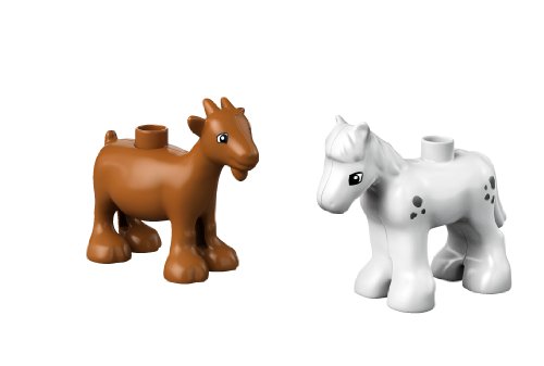 -. Feature : Includes boy ® DUPLO® figure. / Features DUPLO base plate, house with window, fence, pitchfork, flowers, apple tree with apple-decorated DUPLO brick and assorted DUPLO bricks. / DUPLO products are fun and safe for younger hands. / Build the fence to keep the hungry animals out of the garden! / Animals include DUPLO goat and pony.