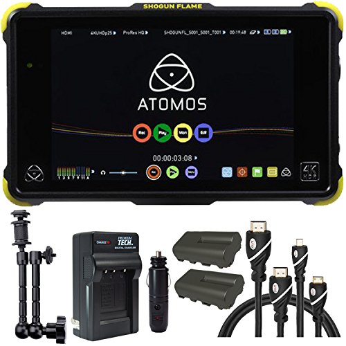 Atomos Shogun Flame 7" 4K Recorder Monitor, Battery, Charger, Caltar 7" Articulating Magic Arm, HDMI A-D Basic 3' Cable and HDMI A-C Basic 3' Cable