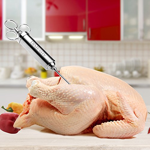 - NO MORE CHEWY AND BLAND MEAT. With DIMESHY perfectly crafted meat injector every bite of the meat is flavorful and juicy. Use it to marinade softer meats like chicken or turkey or use it to marinade lamb or steak. Its sturdy design ensures that you get the same flavorful taste on any meat you love.