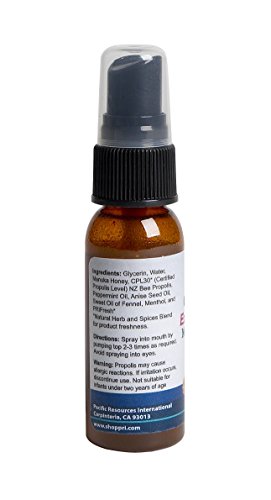 Studio : Pacific Resources Publisher : Pacific Resources Binding : Health and Beauty Product Description Propolis oral spray is a great tasting and mild but effective spray that will soothe the throat and fight infection in one simple spray. Convenient size bottle can be taken anywhere to keep the breath fresh and tackle the tickle. Its extra strength formula contains umf 10 Manuka honey to give it the edge for instant relief and refreshing. 0