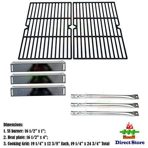 - Direct store Parts Kit includes 3 Stainless Steel burners, 3 Porcelain Steel heat plates, and 1 set of 2 Porcelain Cast Iron cooking grids