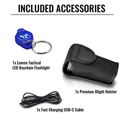 Olight X7R Marauder 12000 Lumen LED Rechargeable Super Bright Cool White Flashlight, USB-C Charging cable, Holster & Lumen Tactical LED Keychain Flashlight