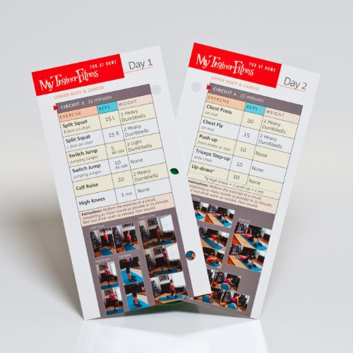 -. Feature : 6 complete workouts on sturdy laminated cards, great for exercise at home and for travel. Each of 6 cards, includes 2 complete ~15-minute circuits. Do entire card at once for 6 days of workouts before starting the cycle over. OR, do just one 15-min circuit per day for 12 days of workouts before starting the circuits over. / No time? No worries! My Trainer Fitness 6 packs workouts are great for grabbing quick sets of stimulating, energizing, health-generating exercises anytime, anywhere. / Perfect fast fitness for when you can't get to the gym...great for energizing your day the healthy way. Head for a card instead of a carb...you will be amazed! / Personal trainer workouts you can do on your own at home or wherever you go. The power of fitness in your hands.