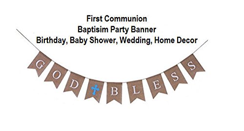 Baptism decoration banner blue cross - first communion birthday baby shower christening kitchen flags welcome fiesta banderines god bless wedding joy