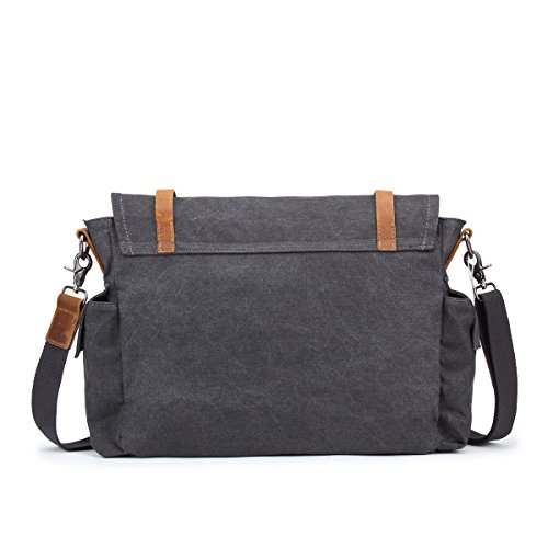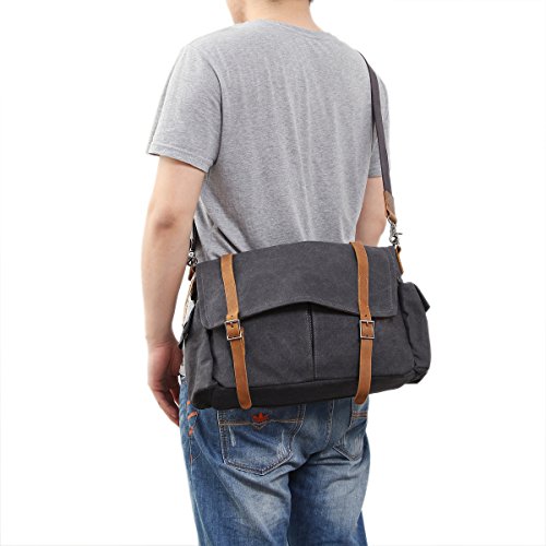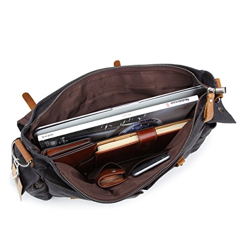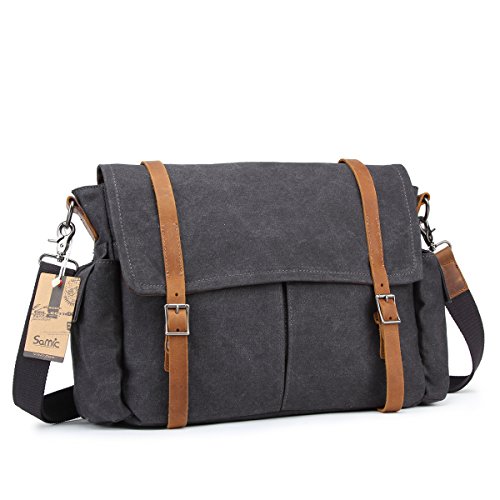 -. Title : Samic® Canvas Messenger Bag Vintage Leather Crossbody Shoulder Laptop Bag 15 Inch