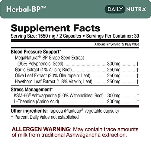 Studio : DailyNutra Publisher : DailyNutra Binding : Health and Beauty Product Description Herbal-BPTM is a proprietary blend of medical-grade botanical extracts formulated to support healthy blood pressure and reduce stress, naturally and without negative side effects.* MegaNatural-BP is a unique form of grape seed extract that has been clinically shown to help maintain healthy blood pressure levels within the normal range.* KSM-66 Ashwagandha has been clinically shown to increase stress resistance and relaxation while improving cardiovascular health.*
