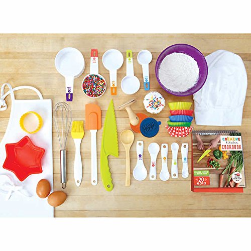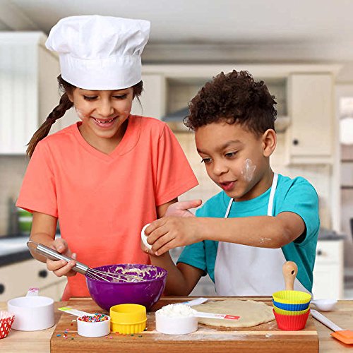 Junior Chef 35-Piece Dishwasher Safe Kitchen-Quality Child Safe Cooking Accessory Set Includes Apron, Hat, Wooden Spoon, Bakeware, Knife and Recipe Book by Creative Kitchen