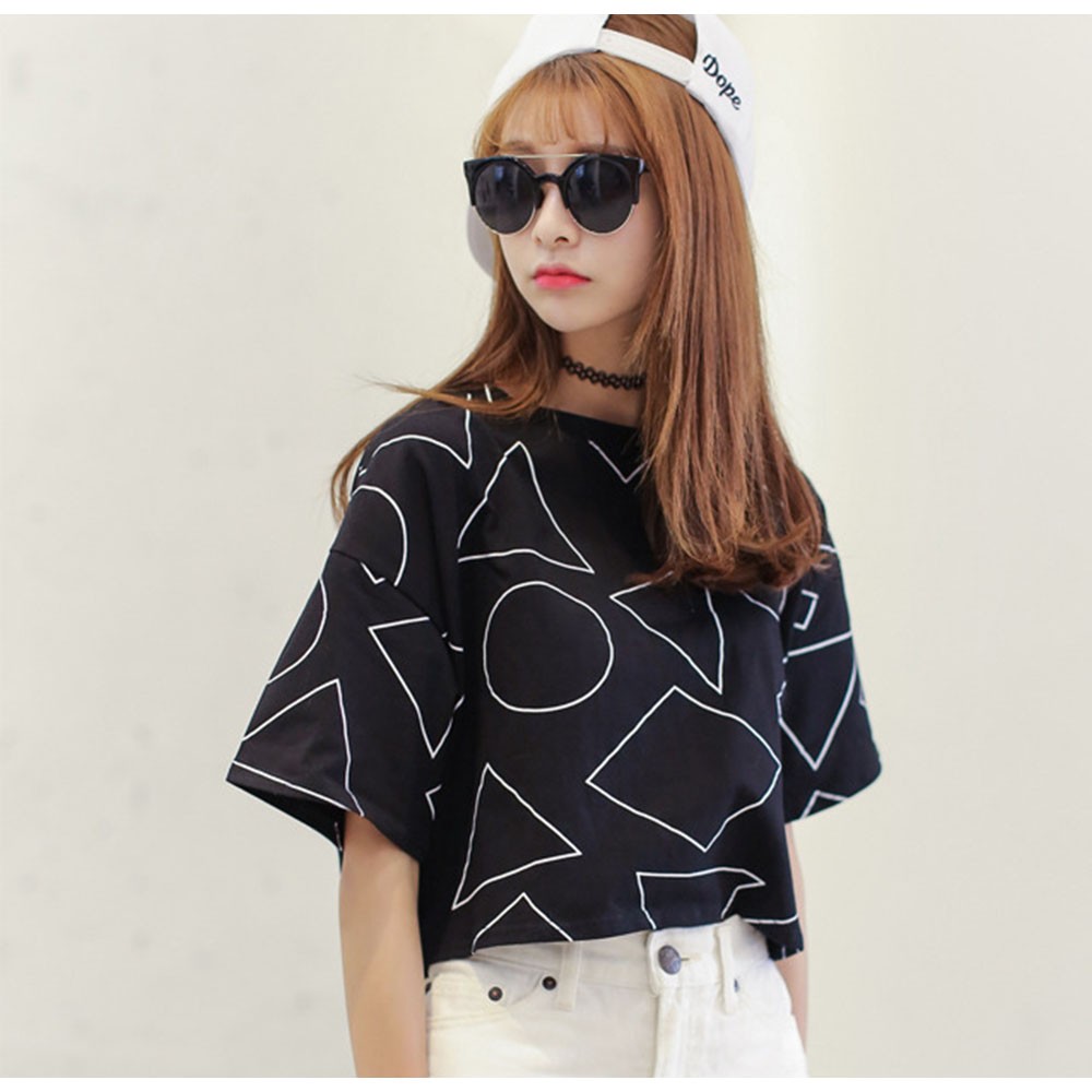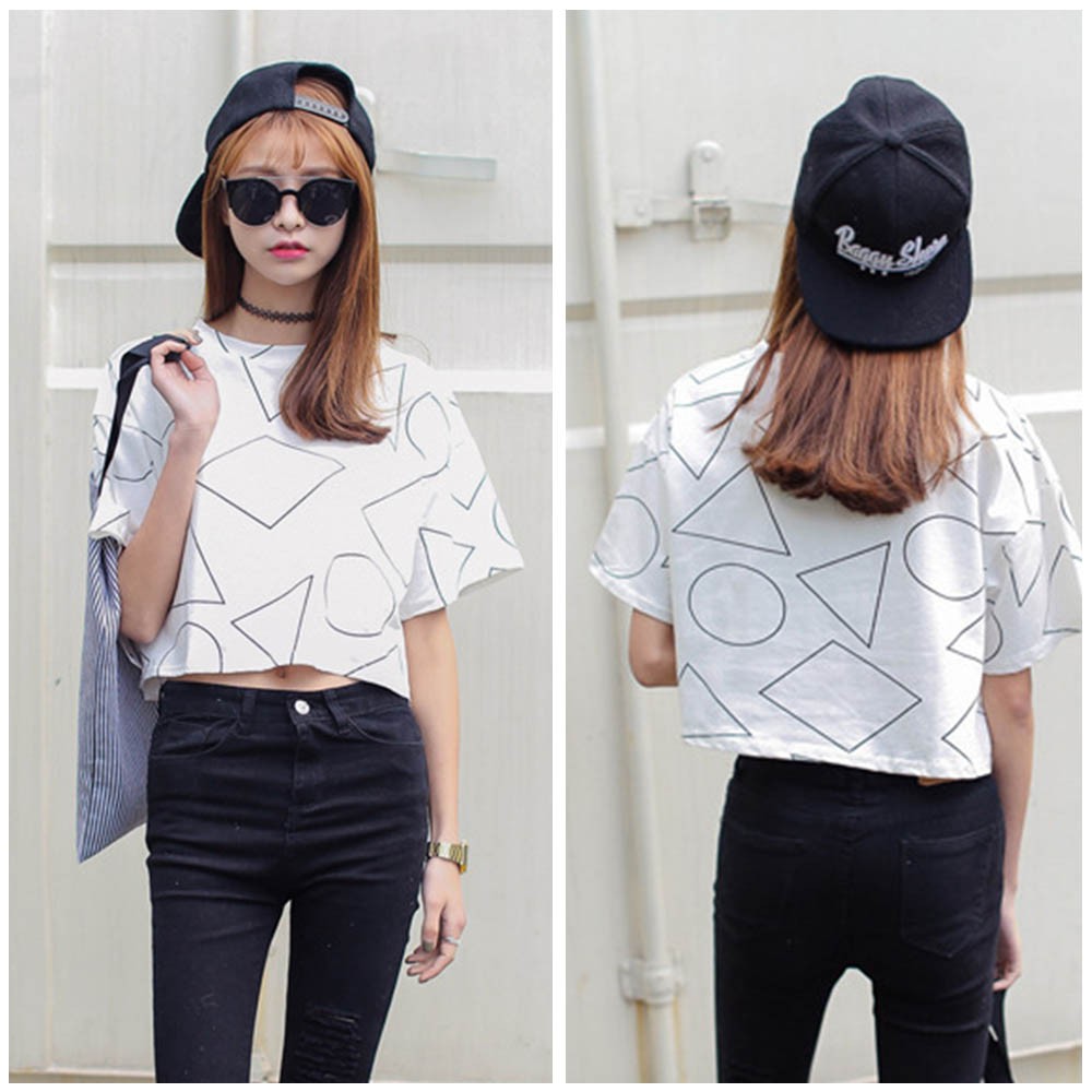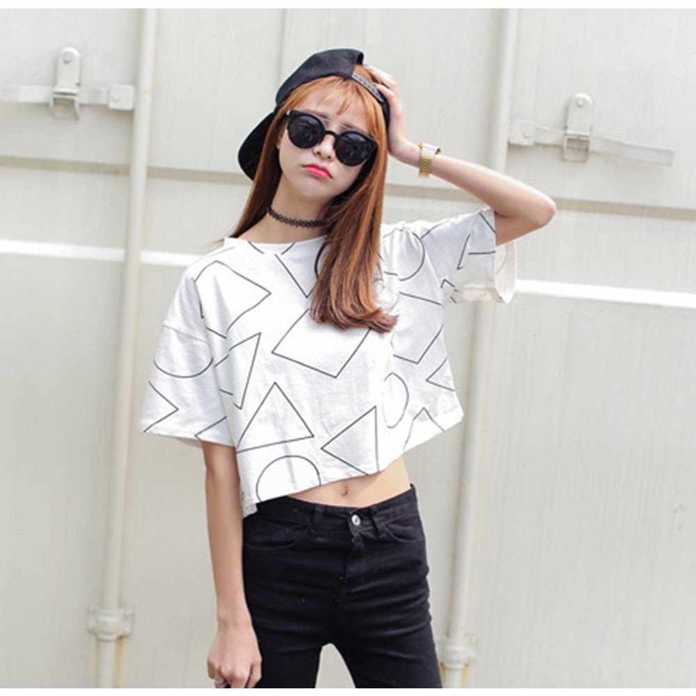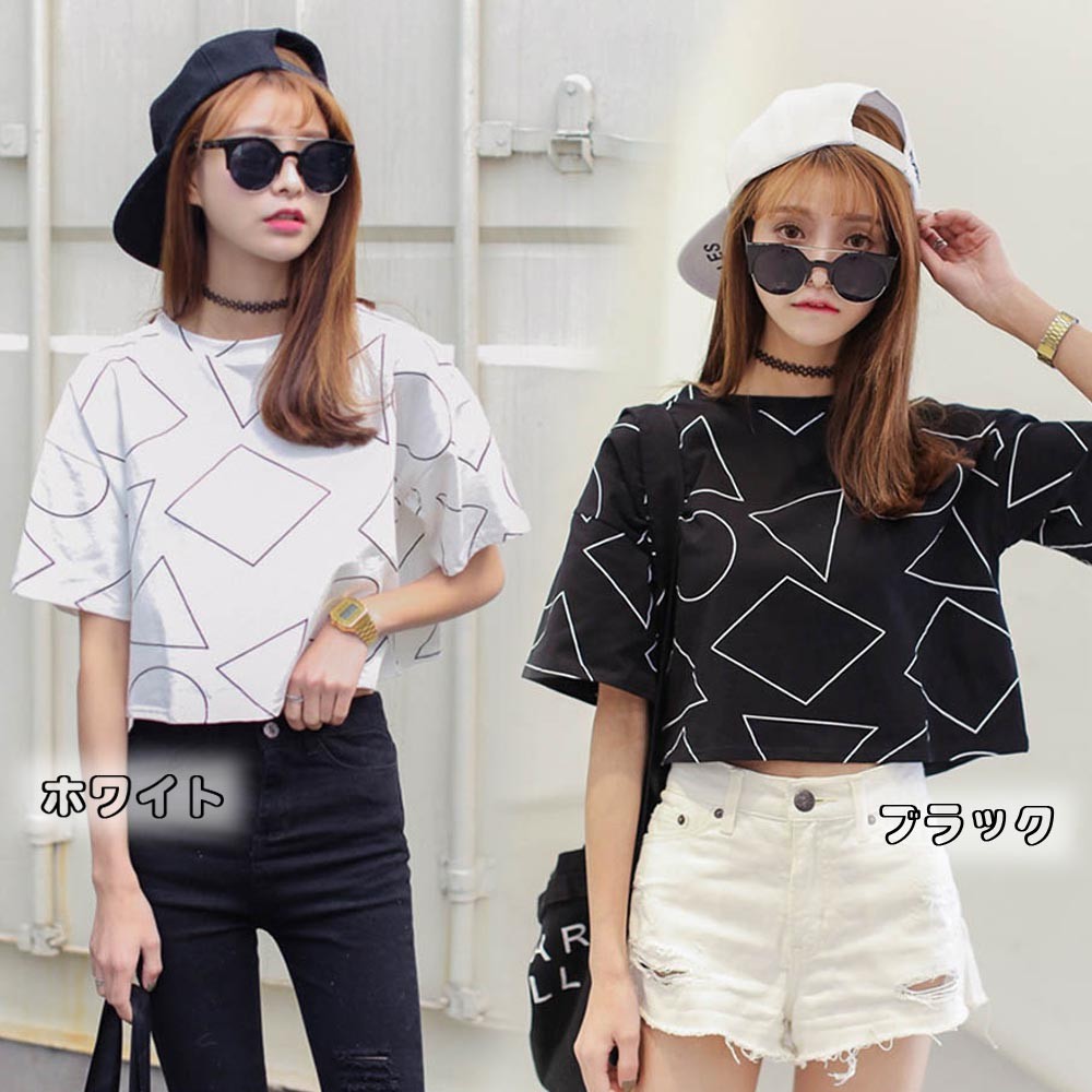 ヘルシーな肌見せを叶えてくれるへそ出しスタイルのショート丈柄tシャツ