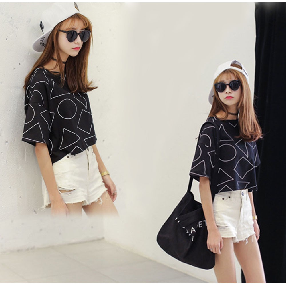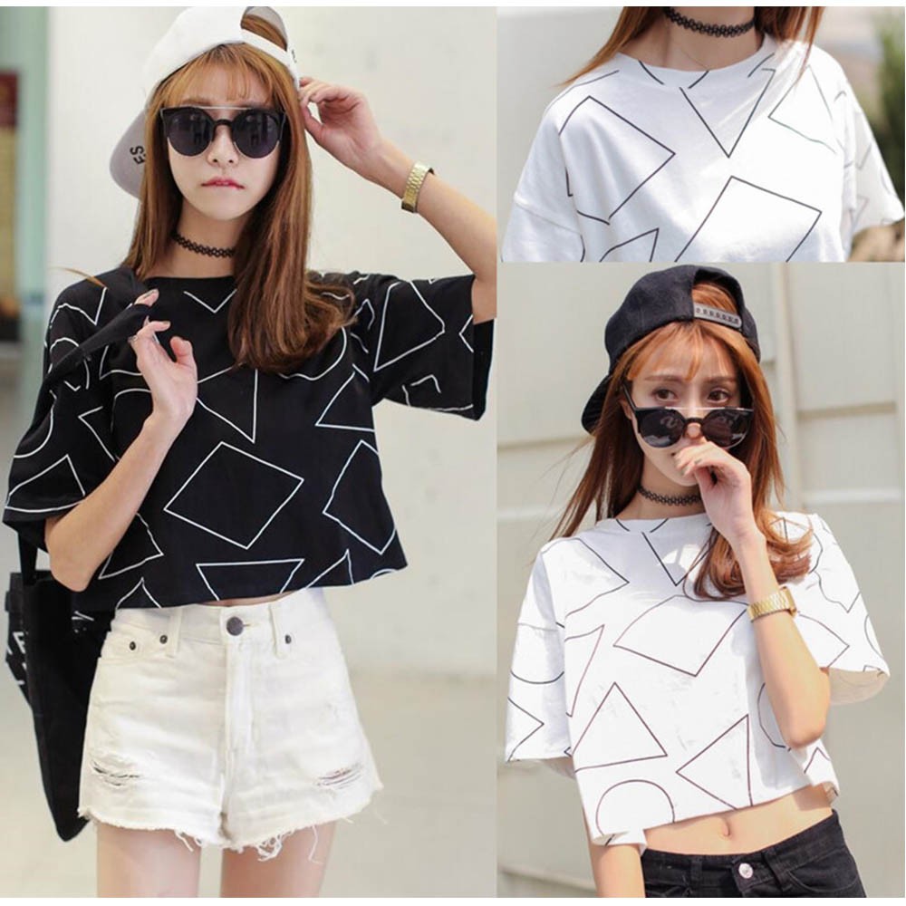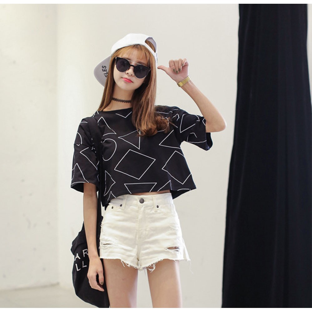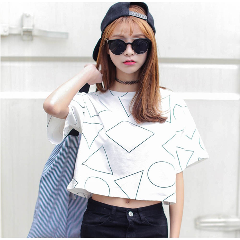 ヘルシーな肌見せを叶えてくれるへそ出しスタイルのショート丈柄tシャツ