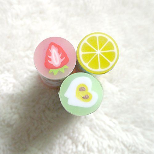 Studio : Adam Victor Publisher : Adam Victor Binding : Toy Product Description 1 Eco Friendly non toxic erasers 2 Strawberries, Oranges and Apples, size: 2 x 0.88 inch 3 Package: 4 pcs (only 3 different patterns) 4 Boxed, Good collectible, incentives, party favors, gift etc. 5 Fulfillment by Amazon,fast shipping 0