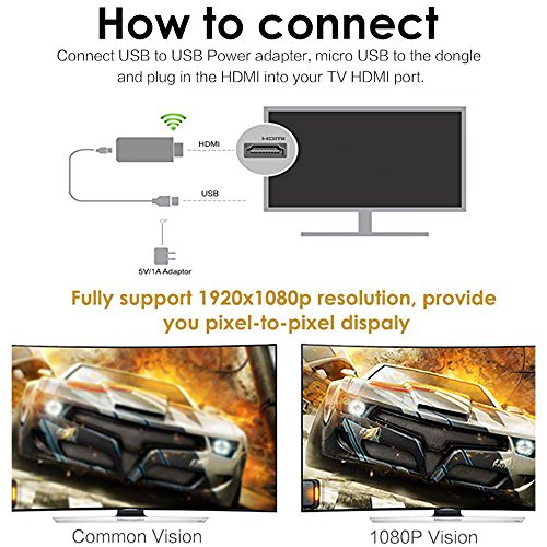 -. Feature : 「POWERFUL MULTI- COMPATIBILITY」The HIGHEVER Wifi display dongle is compatible with smartphones and tablets such as iPhone, Samsung, Sony, iPad with Android 4.2 and iOS 7 above, eg iPhone X/iPhone8, 8 Plus, 7/7 Plus, 6/6 Plus, 6s/6s Plus, 5/5C/5s , 4S/4, SE, iPad 2/3/4/iPad mini/Air/Pro, Samsung/Google/Nokia/HTC/LG, etc. With this wifi display receiver, you can easily share high-resolution media files with friends and family. / 「WIDE APPLICATION」The HDMI WiFi Wireless Dongle stick will supports mirroring of what is displayed on your device screen - Support Airmirror/ DLNA/ Airplay/ Miracast to sync cast photo/ video/ music/ office file/ web browser/ live camera from iPhone/ Android Smartphone/ tablet PC to large screen TV/ Projector by WiFi, perfect for PPT presentation and video meeting. / 「SUPPORT UPGRADE&EASY-TO-USE」The HIGHEVER Airplay dongle will upgrade automatically when there is a new version on the dongle server only if there is a network connection. You don't worry about your phone version that doesn't support the wifi display dongle. The upgraded Dual-core supports Play more stable and Fluently and easy to use. No App or drivers required, only 3 steps to enjoy media on large screen: Plug->Connect->Mirroring by using Miracast, Ezcast, DLAN and Airplay / 「QUALITY GUARANTEE」The Wifi HDMI Dongle meets stringent CE & ROSH certification requirements for product safety, which drastically reduces the risk of fire, overheating and disconnection compared to other hdmi dongle. Note: Before you use, pls switch the TV signal source to HDMI first. And pull out the USB Plug when not using. / 「12MONTH WORRY-FREE WARRANTY」Customer satisfaction is our top priority. We promise 30-Day Money back, 12Month Warranty and friendly customer service. We are absolutely confident that you're capable of repairing your phone. If you are not 100% satisfied with your new battery, just let us know! Contact us via Amazon and our professional customer support will gladly answer all of your questions.