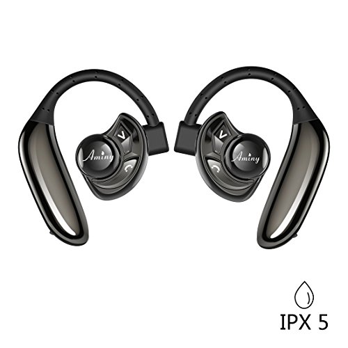 Wireless Earbuds AMINY with 8 Hours Battery life True Wireless Earbuds Stereo Bluetooth 4.2 Headphones Cordless Sweatproof In-Ear Headset with Mic Secure Fit for Iphone Huawei Samsung Xiaomi HTC Black
