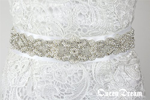 QueenDream vintage rhinestone belt bridal belt white rhinestone applique sash rhineston belt bridal belt for girls