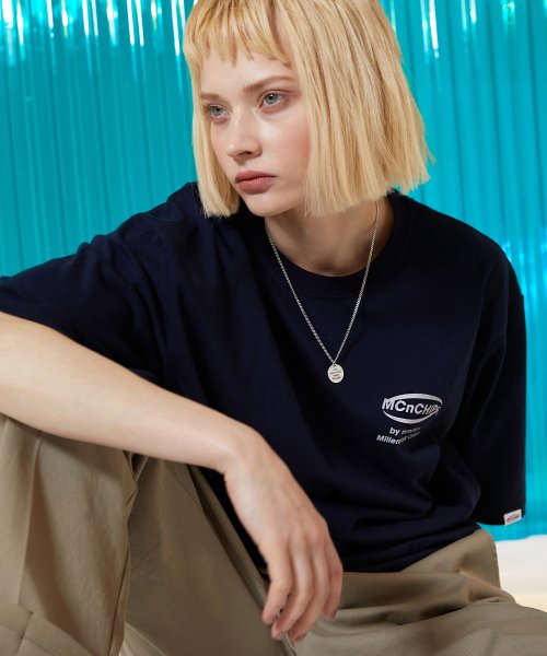맥앤칩스(MCNCHIPS) 미니 스퀘어 로고 티셔츠 [네이비]