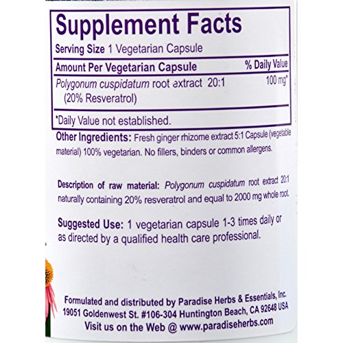 Product DescriptionParadise Herbs Resveratrol - 60 Vegetarian Capsules0