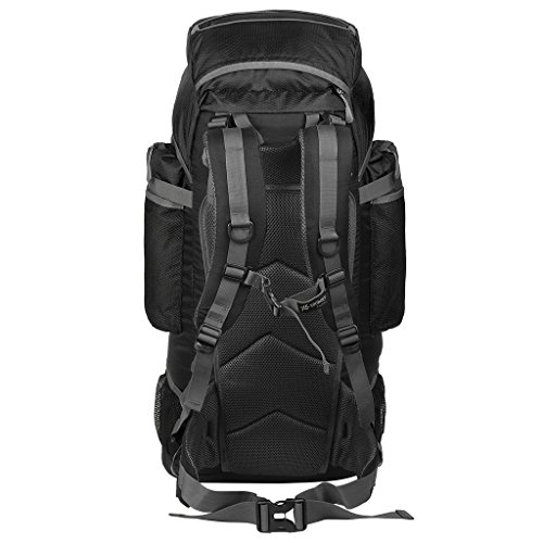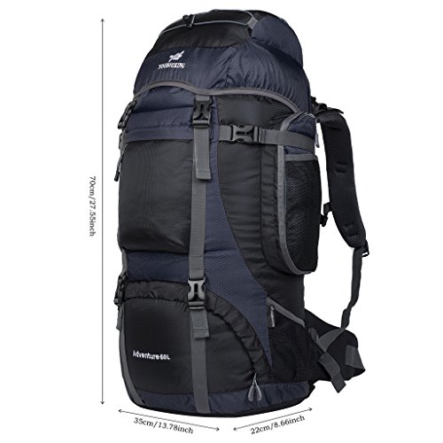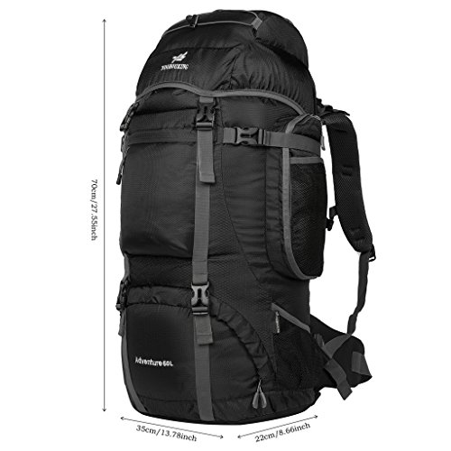 -. Feature : Material:Water resistant nylon / Dimensions:27.55" x 13.78" x 8.66",Capacity: 60L / Thick mesh lumbar pad for comfort against your back / Multiple pockets keeps valuables separate and organized / Perfect for hiking,occasional travel,pack beach accessories, camping and more,and great gift for everyone