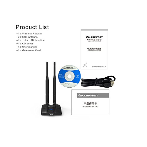 Expand Wireless Network Range! If you are looking for a powerful and reliable network adapter to replace your built-in or on-board network adapter, then the Comfast® Wi-Fi USB Network Adapter is your answer. Enjoy high-speed internet streaming and downloading experience at 150Mbps. The Comfast Wi-Fi USB Network Adapter comes with dual detachable high-gain antennas providing a coverage of up to 200m indoors and 500m outdoors. Perfect for HD televisions and demanding applications. Designed to conveniently mount on your system with a durable USB cable. Engineered on the robust Wireless-N Standards, having advanced data security structure.