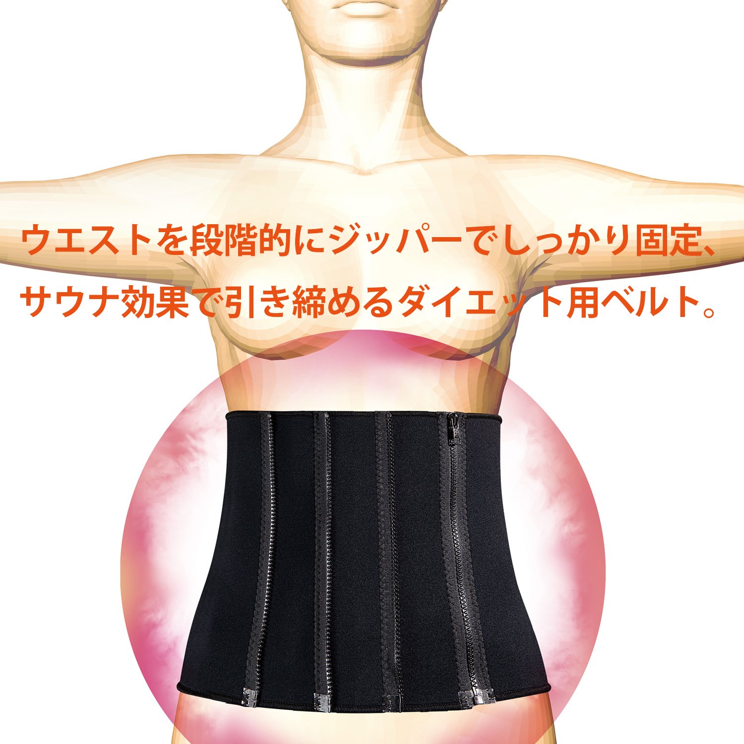 It is a belt for a diet that firmly fixes the waist in a zipper stepwise and tightens with sauna effect.