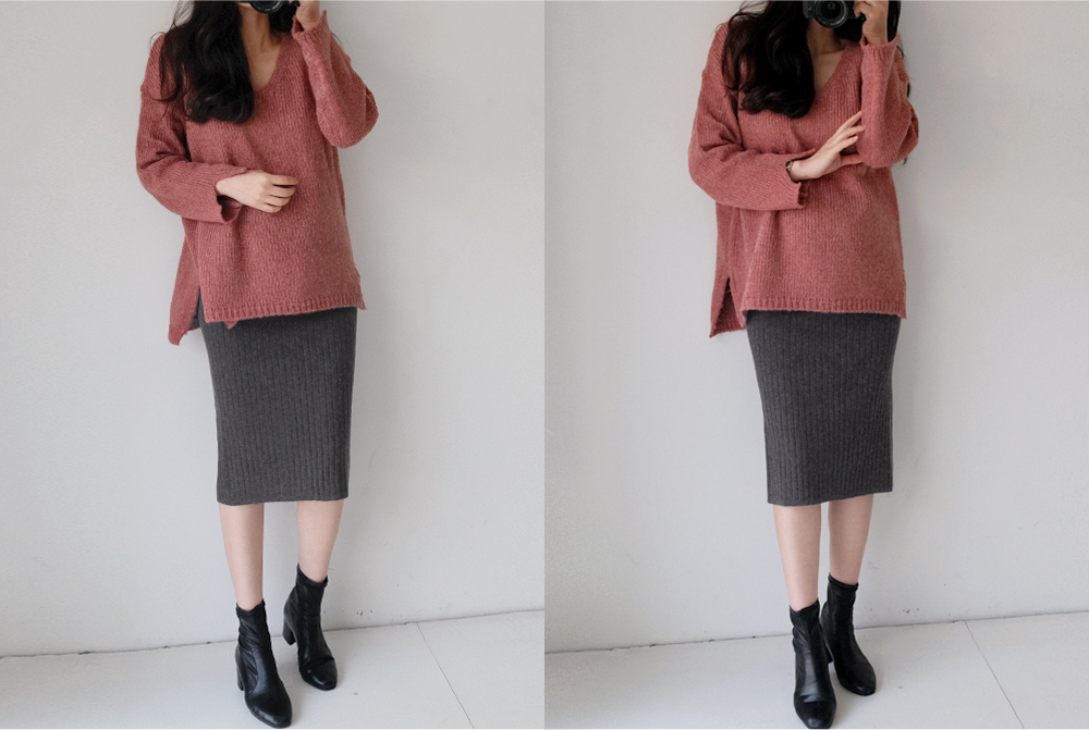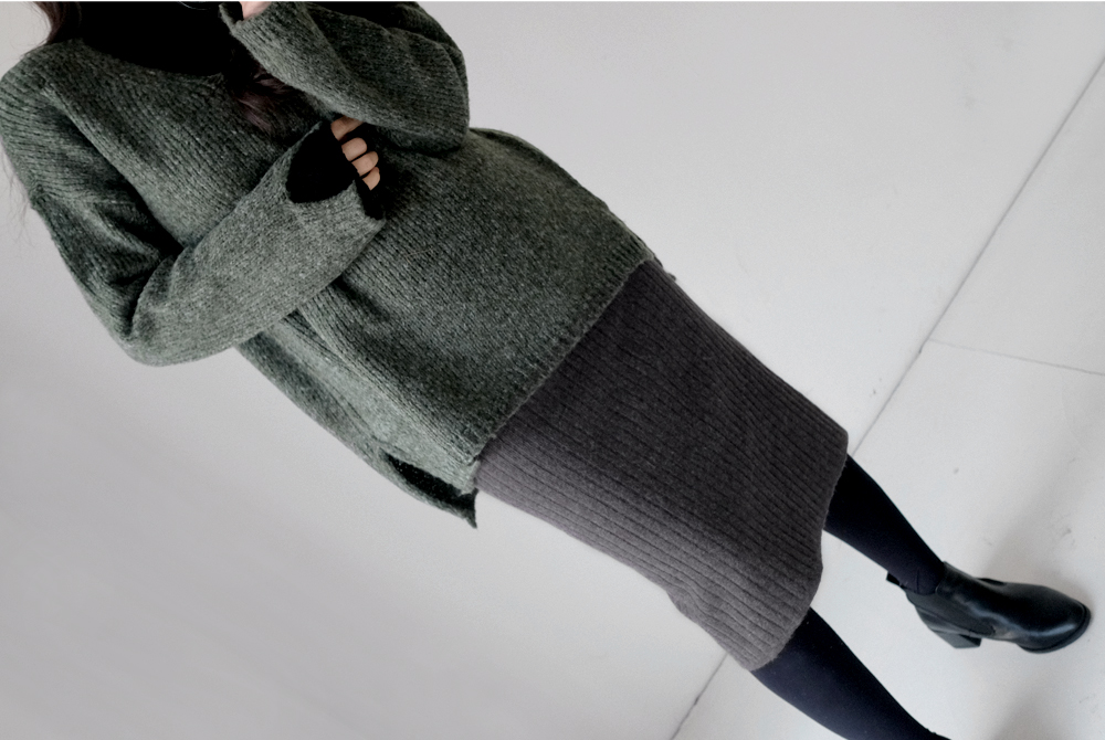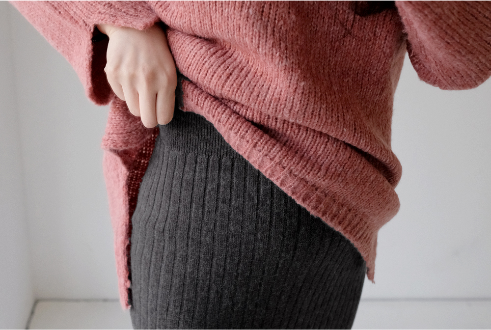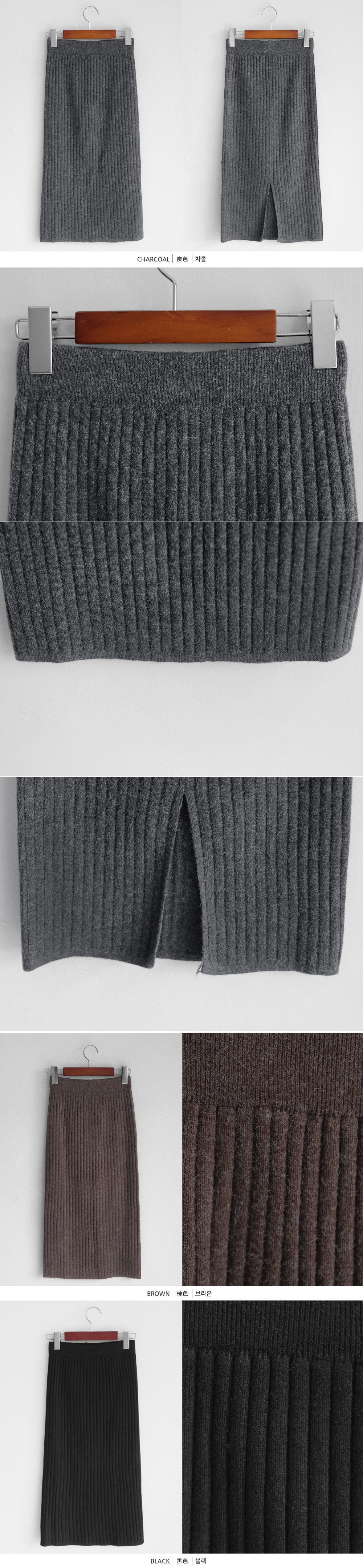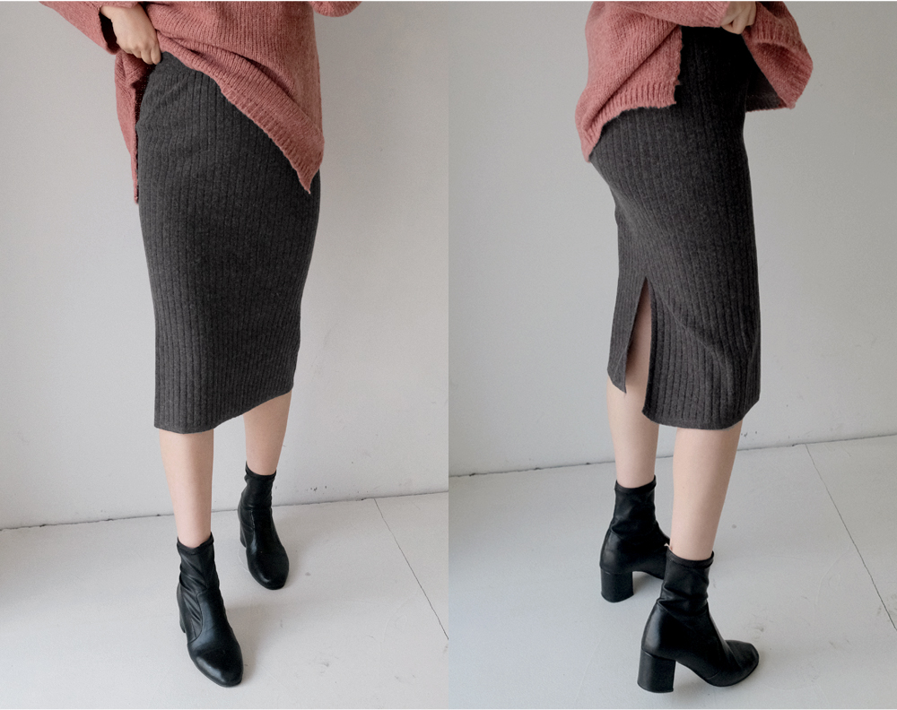 세로 골지짜임과 뒷트임 디테일로 슬림한 연출이 가능한 니트 스커트:)