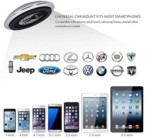 ✔Package includes one detachable magnetic disk, two adhasive metal plates(one for large phone, one for tab less than 9.7inch), two 3M tapes, and one steel anti-rust ball shape mount.