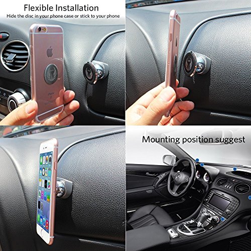 Easy To Use Simply stick the included adhesive metallic disk to the back of your phone, and place the phone with metallic disc centered over the magnetic holder. The high quality 360-degree ball mount allows you to adjust to any angle, so you can always keep your phone FULLY IN VIEW.