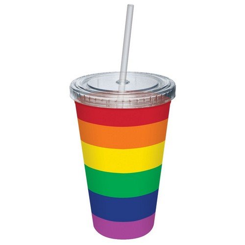 (ICUP)/Stationery Party Supplies/Party Supplies/DIRECT FROM USA/ICUP It's A Double Rainbow - LGBT Rainbow 16oz. Plastic Cup with Straw
