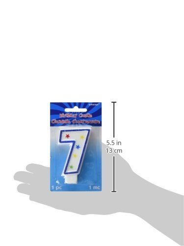 Star Studded Flat Molded Number 7 Celebration Candle, White , 3.5" Wax