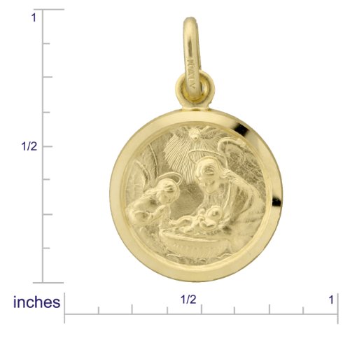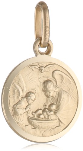 -. Feature : Shows the image of the Baby Jesus with two attentive angels in a dull finish surrounded by a polished border, made in Italy / Made in Italy