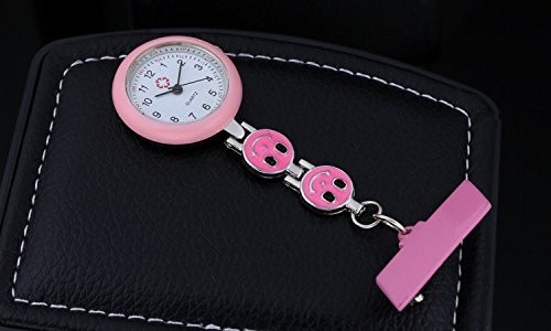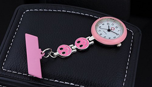 -. Title : Lovely Pink Smile Face Quartz Fob Watch For Nurse Lapel Pin Watch